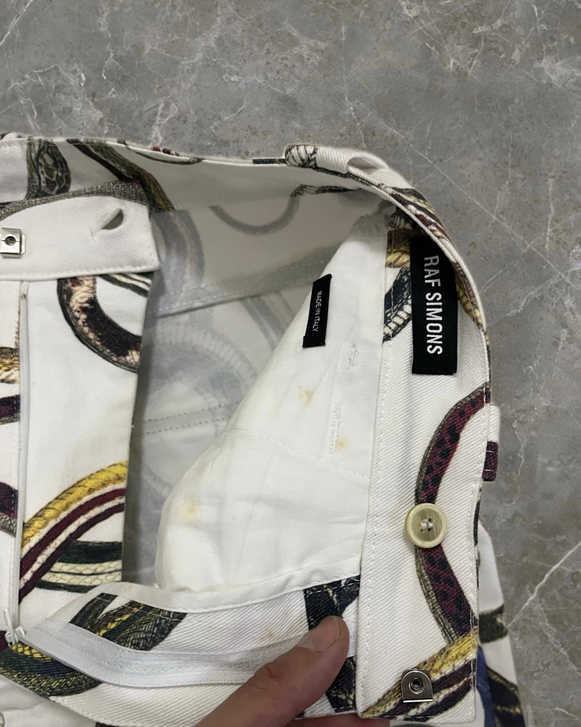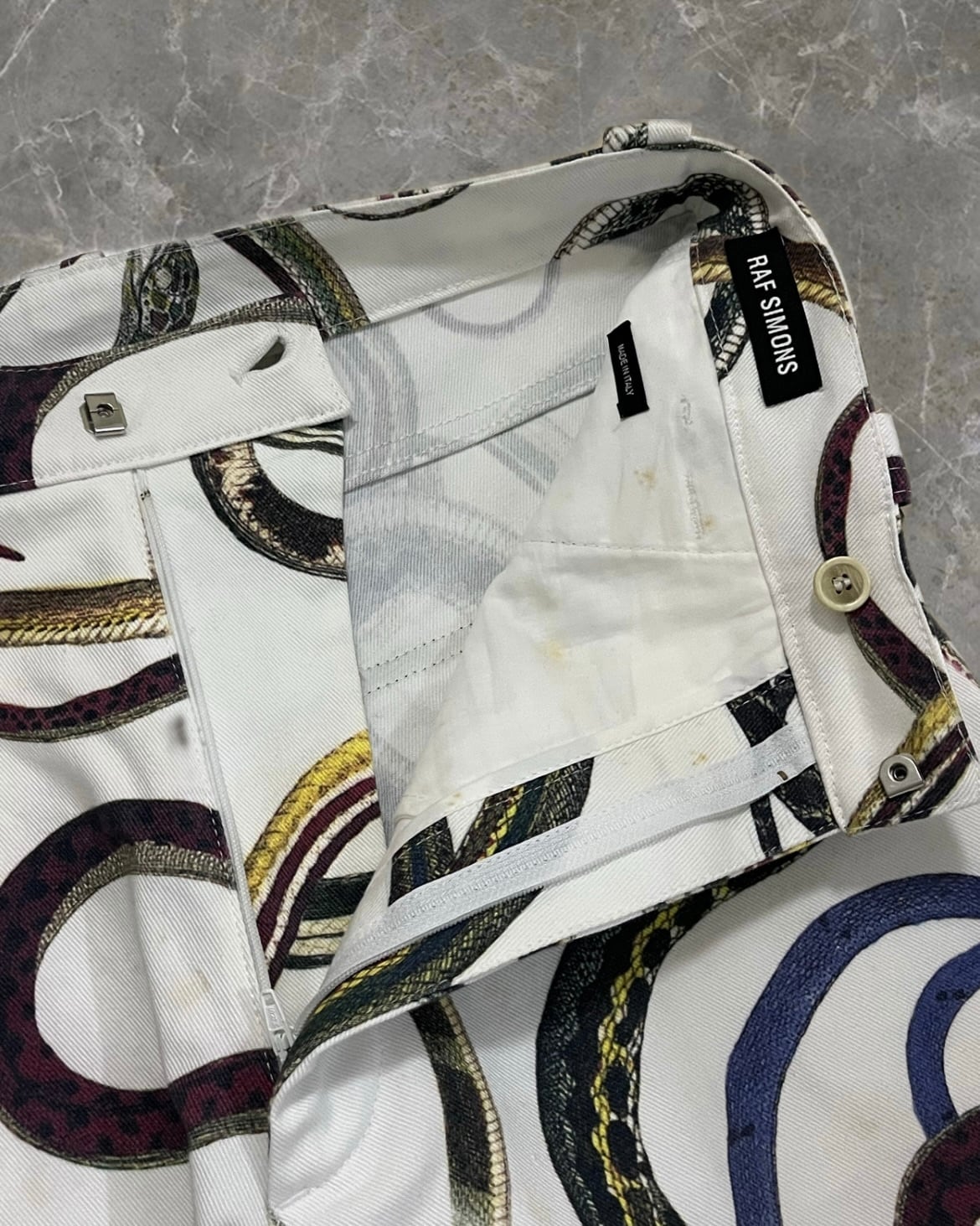 model 175cm 60kg size 44 ウエスト 39 股上 32 総丈 103 状態 ☞d 内ポケット、裾汚れ a ...新品 b ...目立った使用感のない商品 c ...一般的な古着,多少の使用感がある商品 d …目立った傷やほつれのある商品 ※古着商品の為返品交換は行っておりません。 古着にご理解のある方のみのご購入お願い致します。