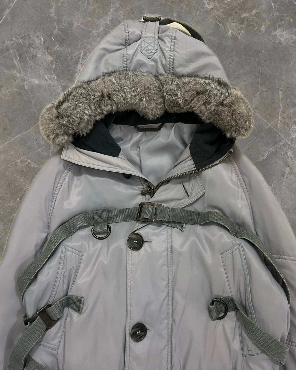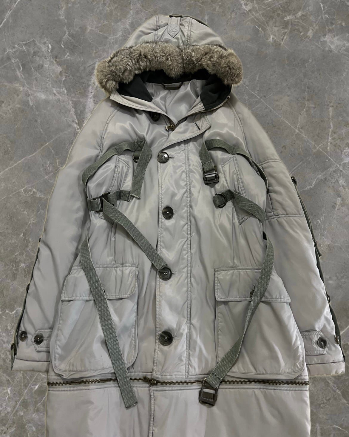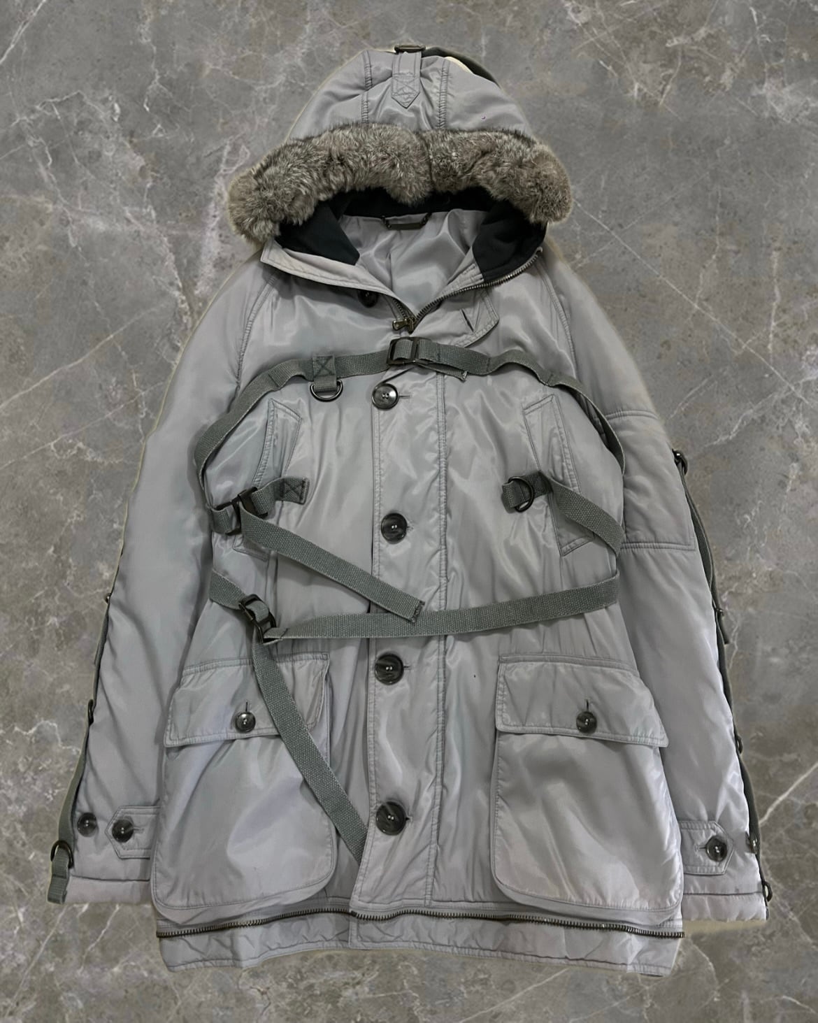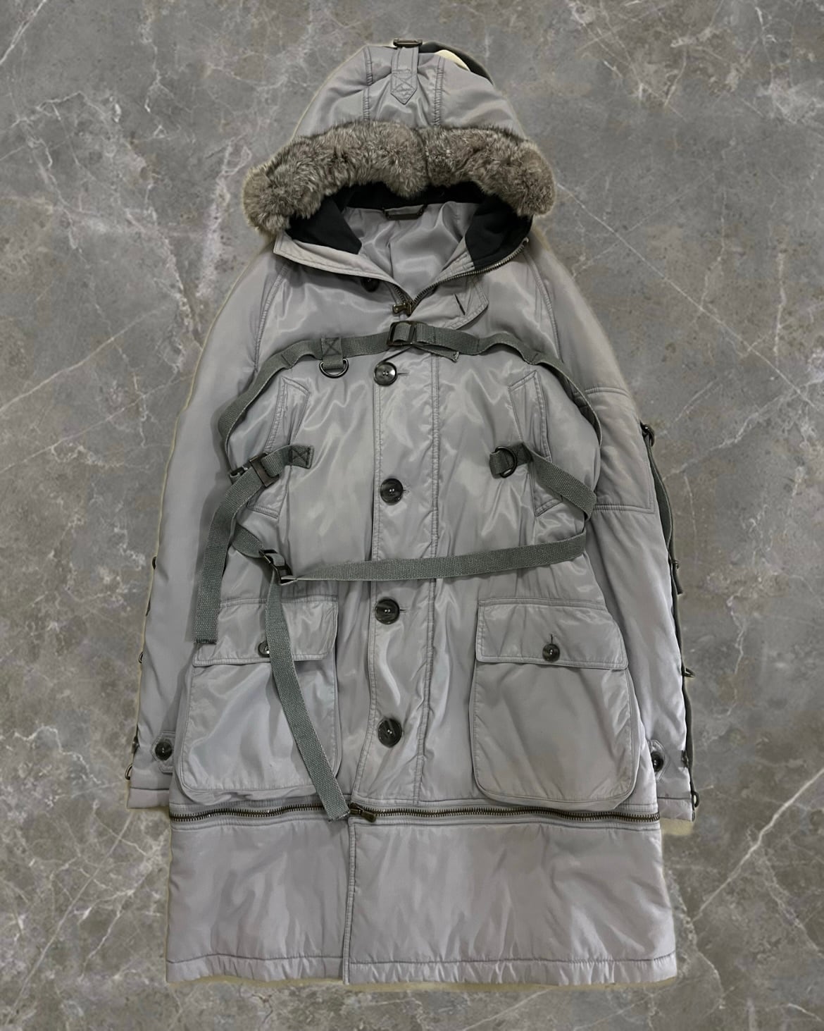 "DOLCE&GABBANA 03AW" bondage design length detachable fur hood coat