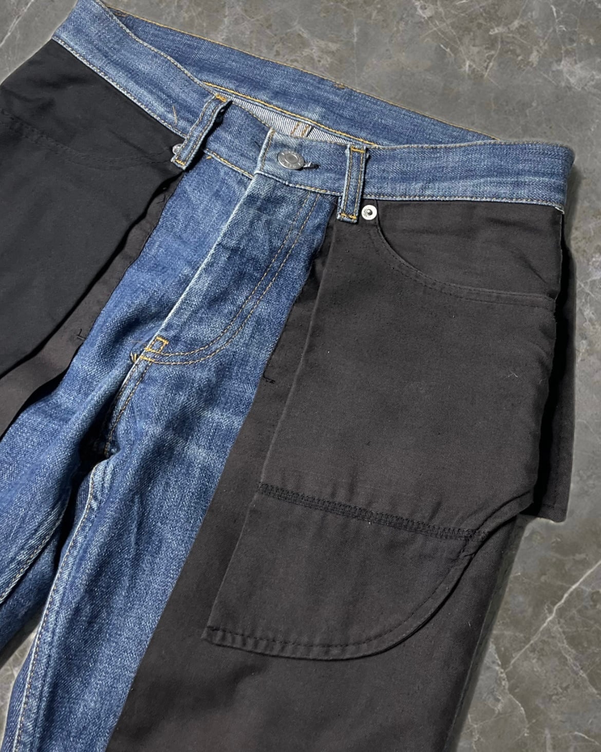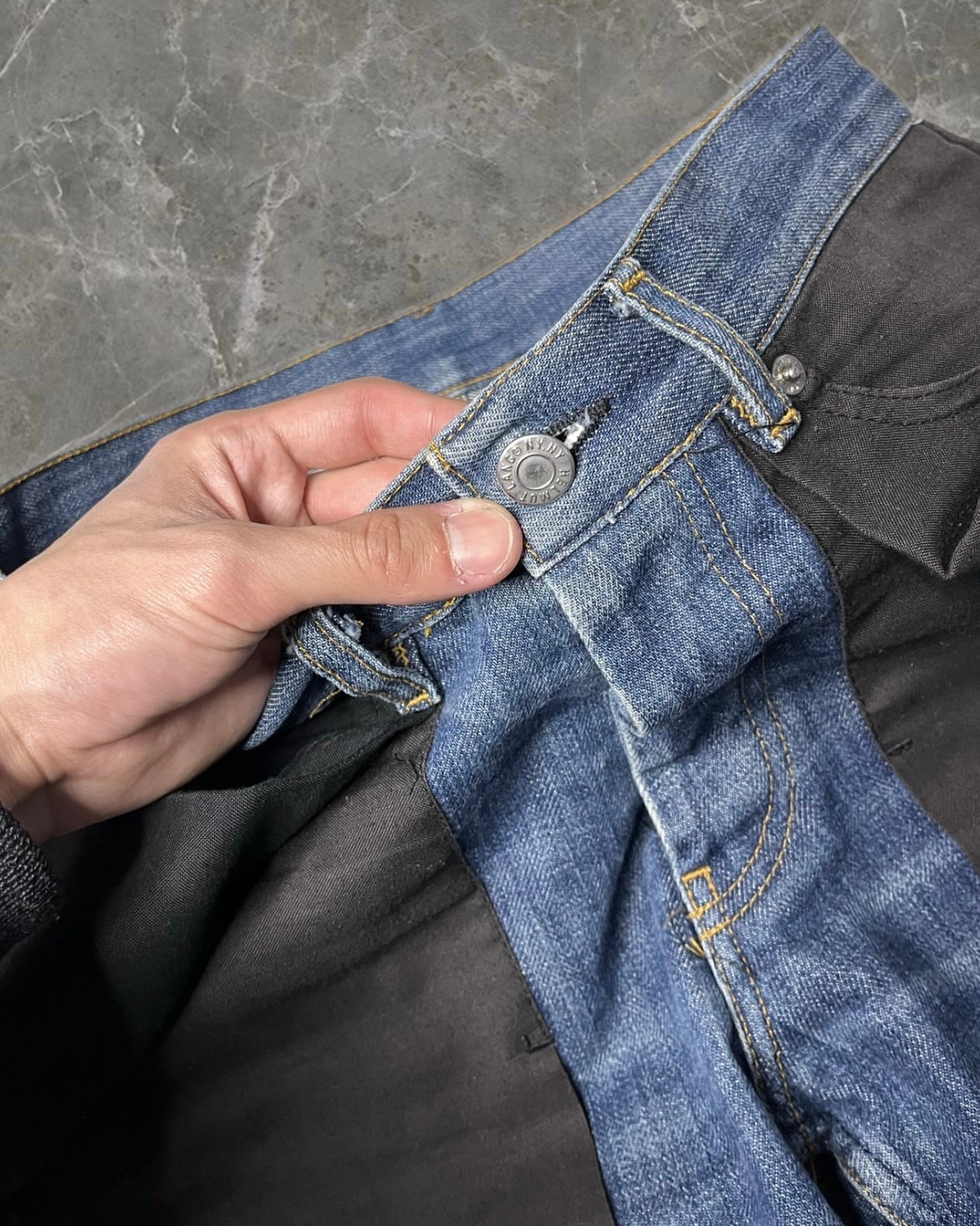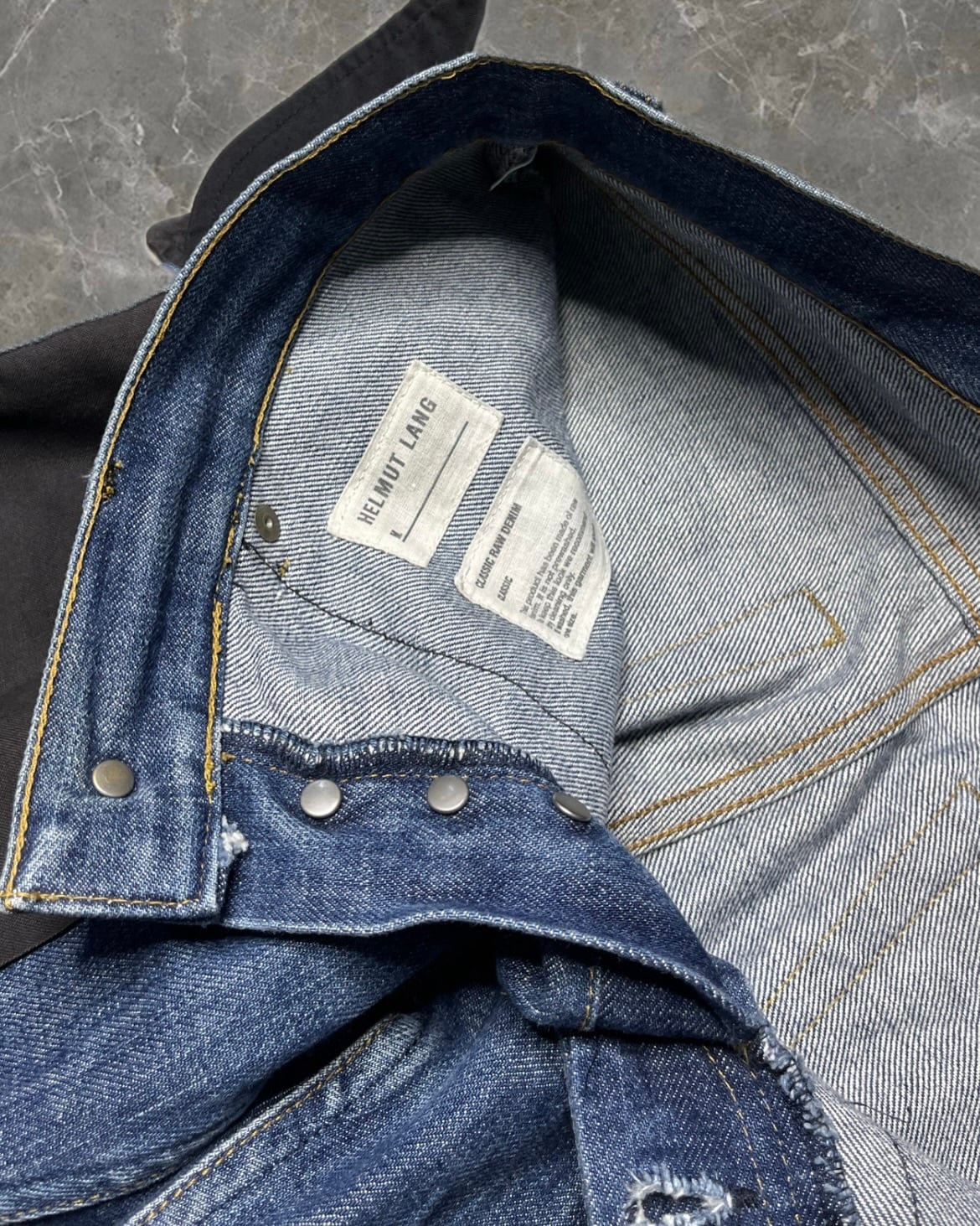 "HELMUT LANG 03SS" inside out denim pants